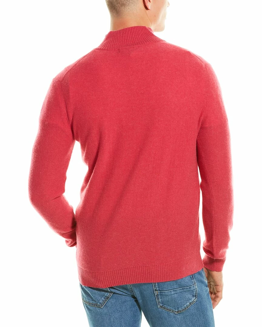 - Reverse Jersey Cashmere 1/4-Zip Mock Neck Sweater In Pink With Ribbed Trim