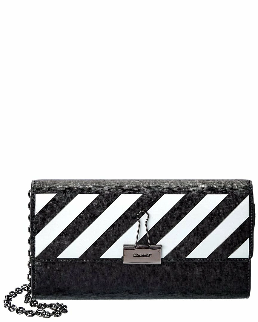 New 👍 OFF WHITE 👩 women Off-White Binder Leather Wallet On Chain ✨