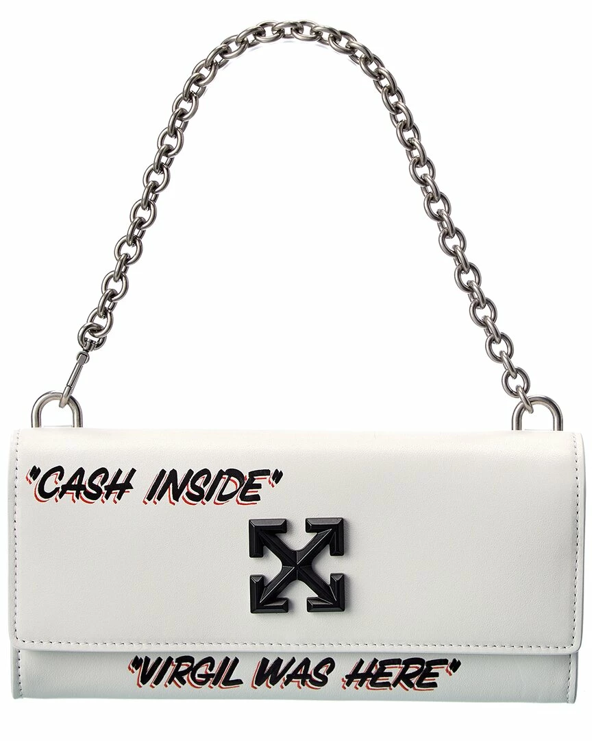 Deals ✨ OFF WHITE 👩 women Off-White Jitney Quote Print Leather Wallet On Chain 🌟