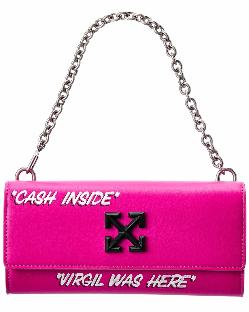 New 🤩 OFF WHITE 👩 women Off-White Jitney Quote Print Leather Wallet On Chain 🌟
