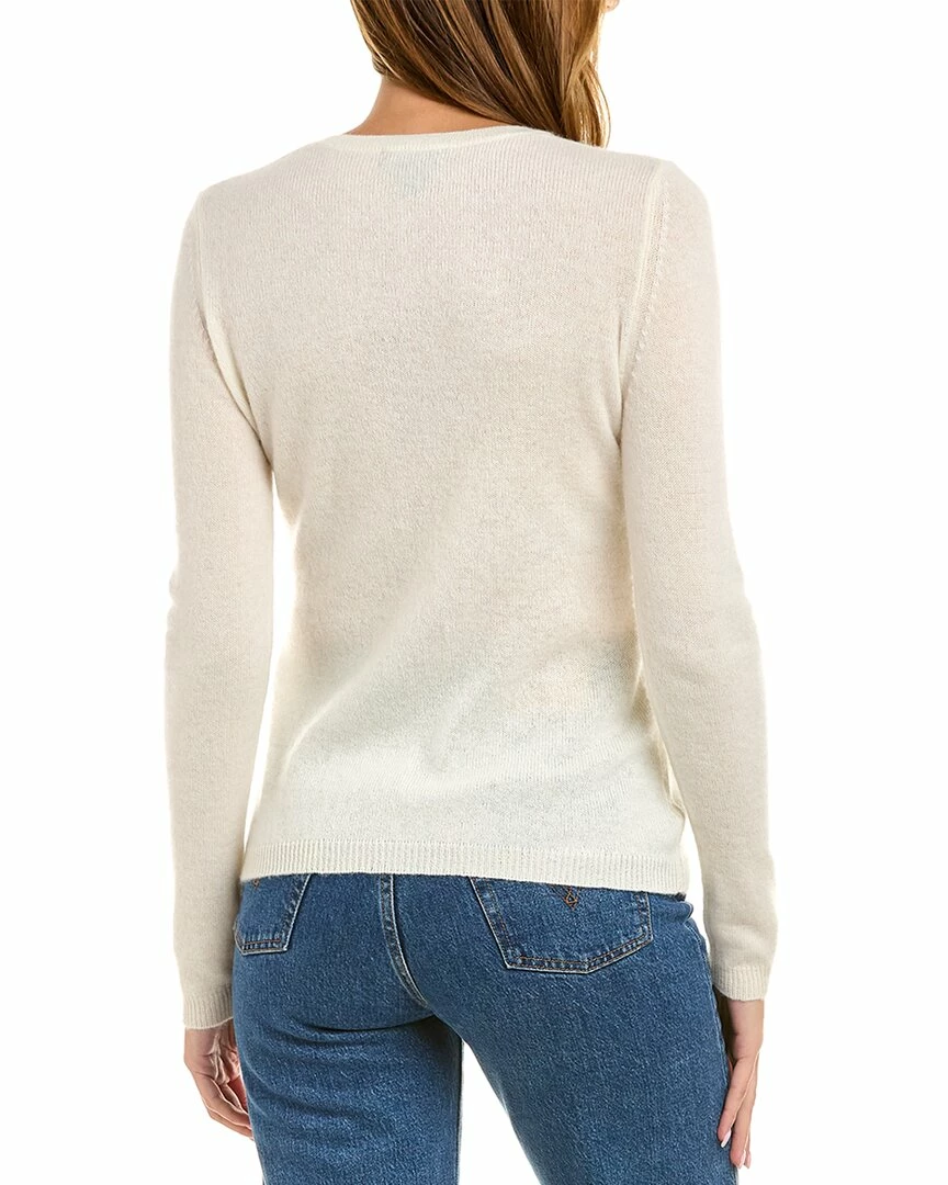 - Basic Crewneck Cashmere Sweater In White With Ribbed Trim