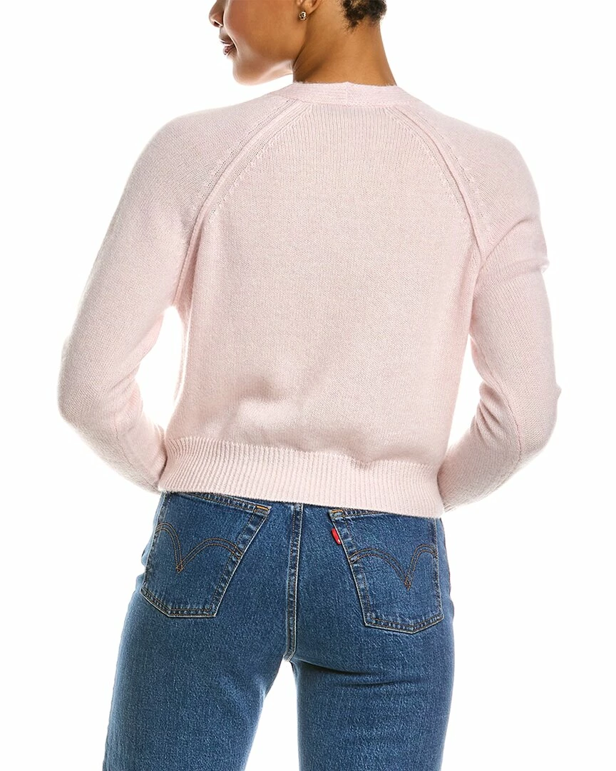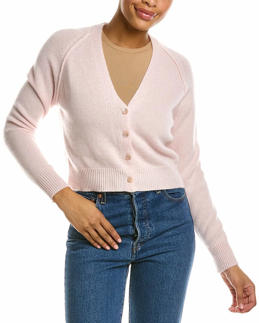 - Cropped Cashmere Cardigan In Dogwood With Raglan Sleeves And Ribbed Trim
