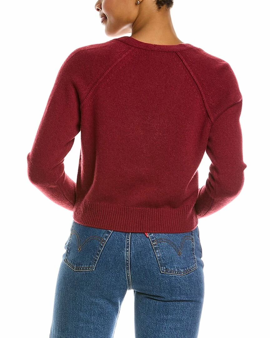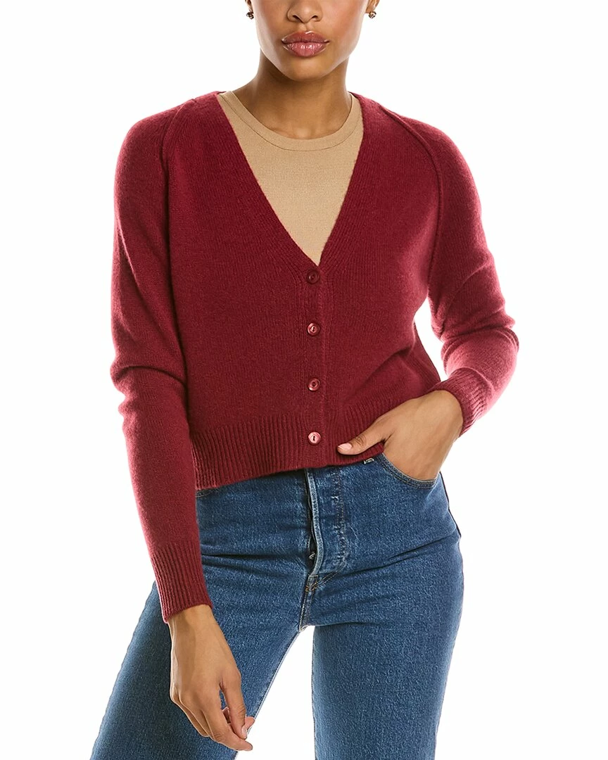 - Cropped Cashmere Cardigan In Claret With Raglan Sleeves And Ribbed Trim