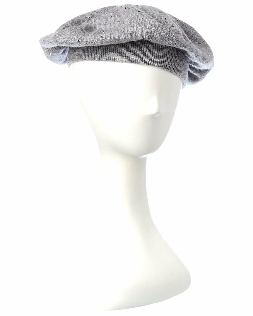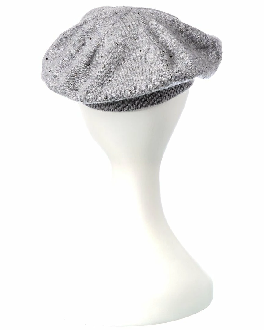 - Crystal Studded Beret In Grey With Rhinestone Embellishments And Ribbed Trim