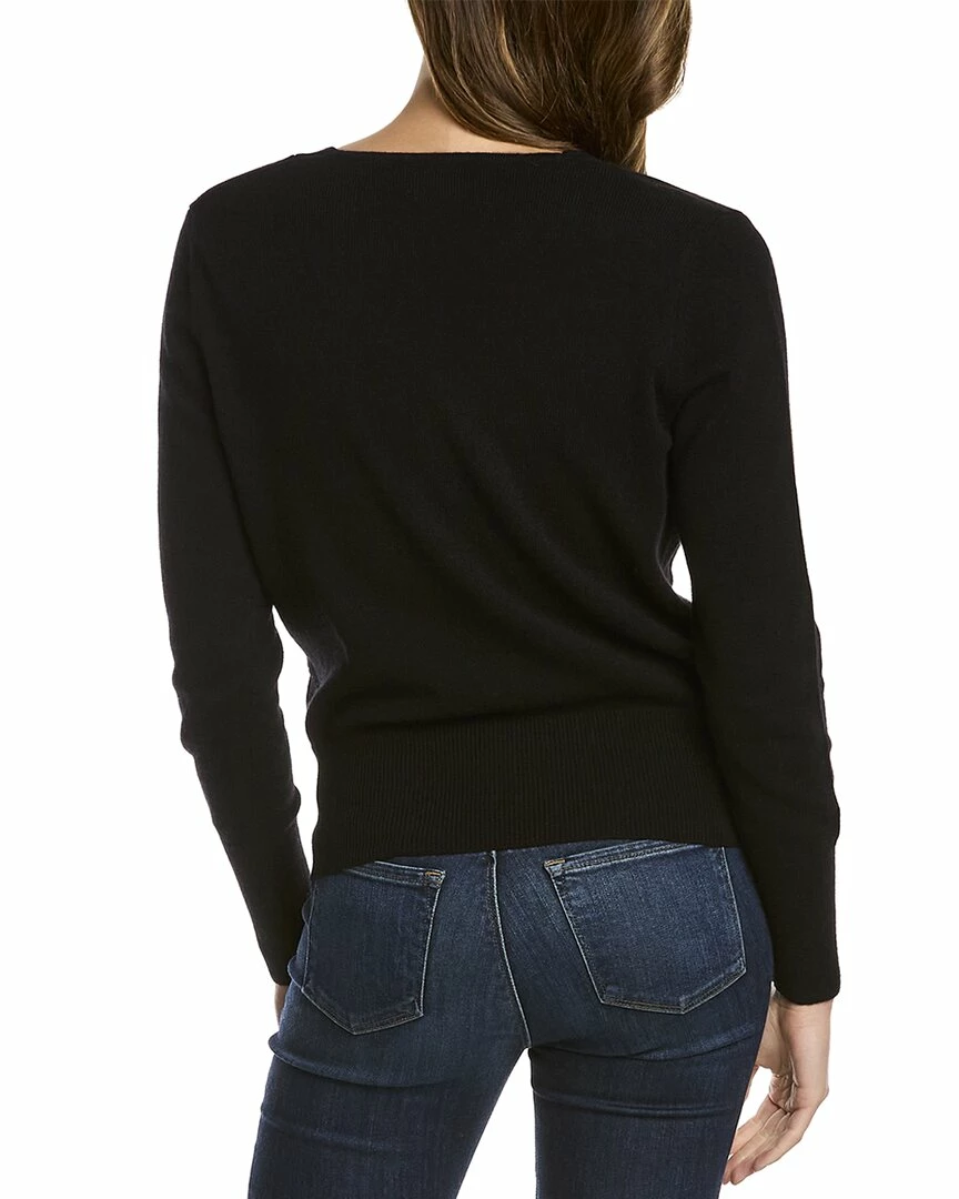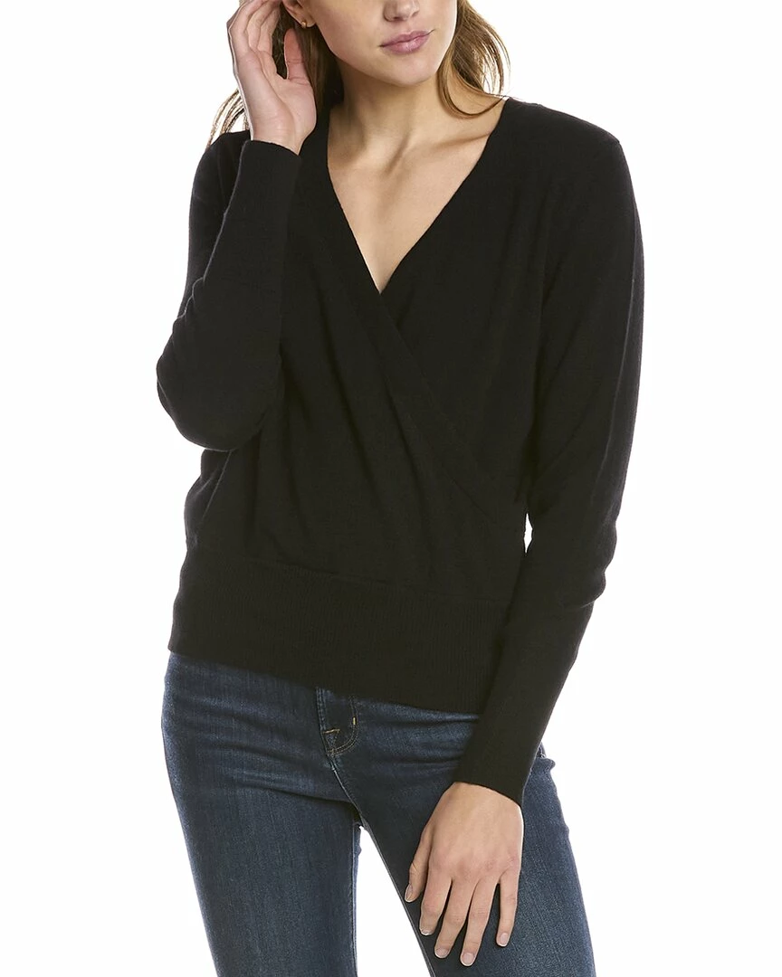 - Drape Surplice Cashmere Sweater In Black With Surplice Front And Ribbed Trim