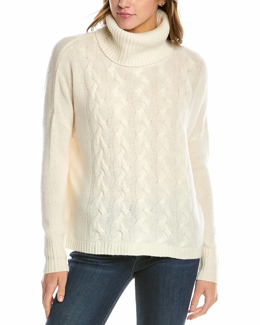 - Easy Cable Cowl Cashmere Popover In Ivory With Dropped-Shoulder Sleeves