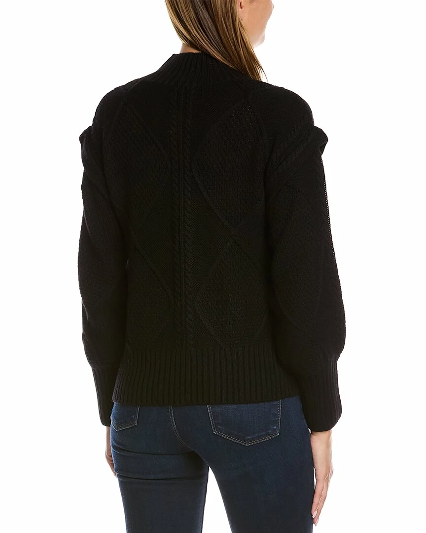 - Fashioned Rib Turtleneck Wool & Cashmere-Blend Sweater In Black With Mixed Stitch, Turtleneck And Dropped-Shoulder Sleeves