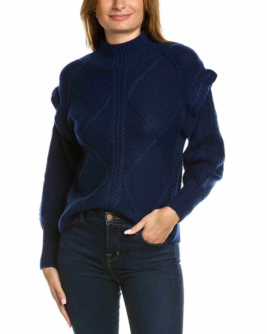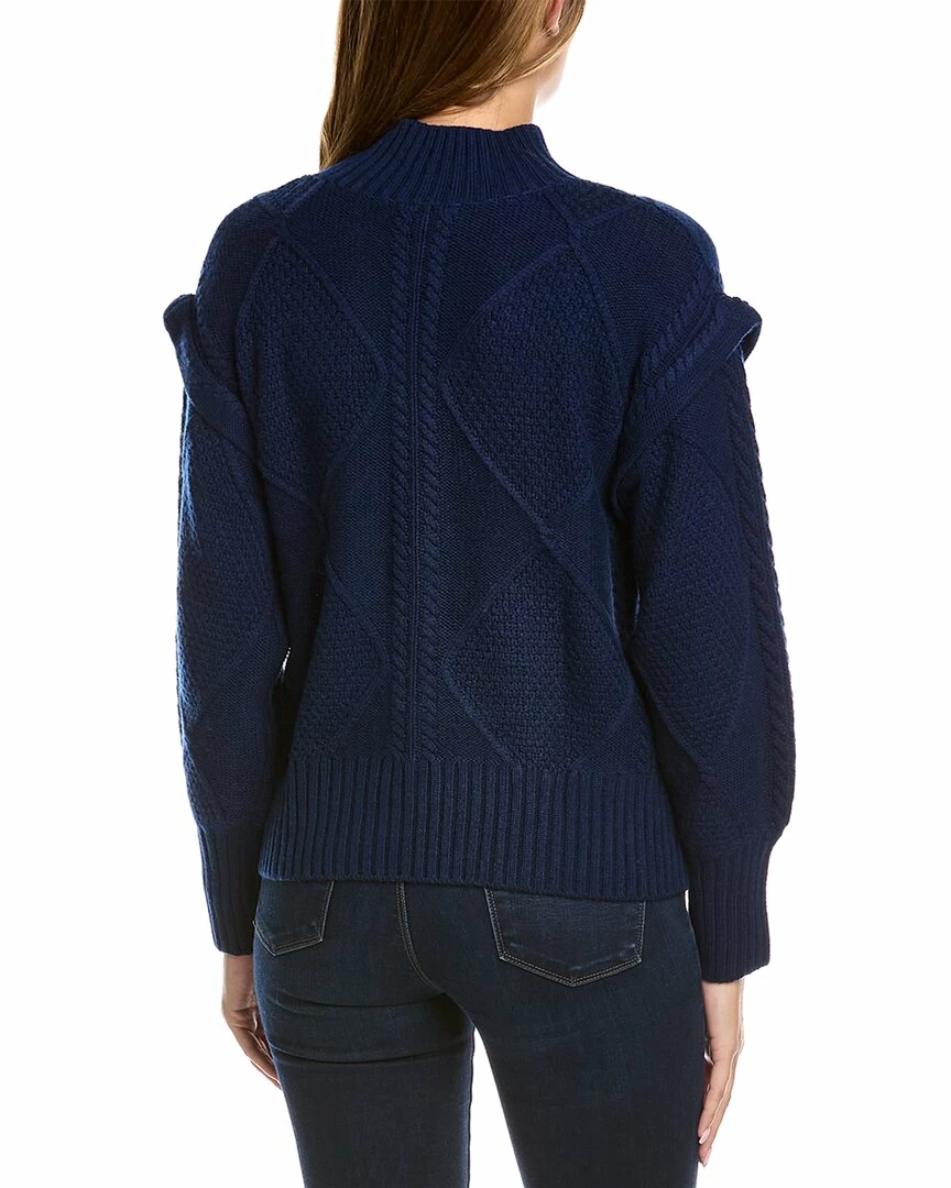 - Fashioned Rib Turtleneck Wool & Cashmere-Blend Sweater In Dusk With Mixed Stitch, Turtleneck And Dropped-Shoulder Sleeves