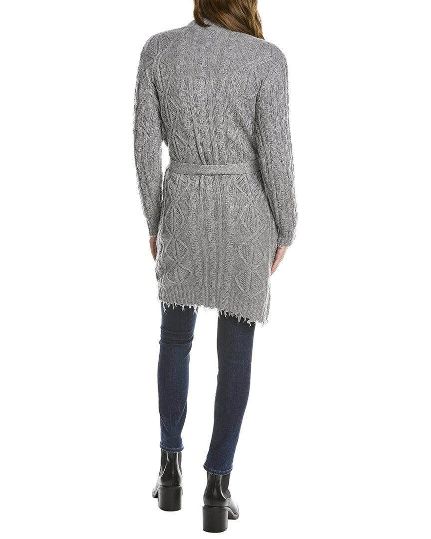- Fringe Cable Wool & Cashmere-Blend Cardigan In Sterling With Cable Knit, Dual Front Pockets, Self-Tie Waist Sash And Fringe Trim