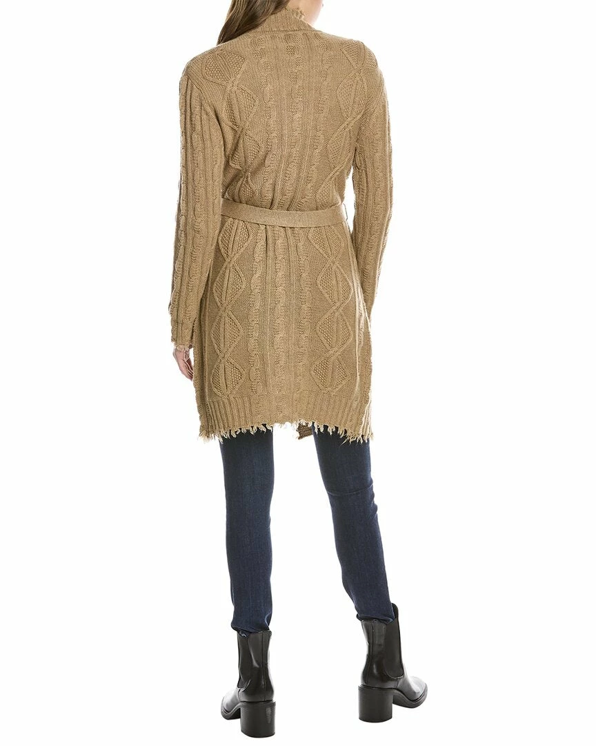 - Fringe Cable Wool & Cashmere-Blend Cardigan In Toffee With Cable Knit, Dual Front Pockets, Self-Tie Waist Sash And Fringe Trim