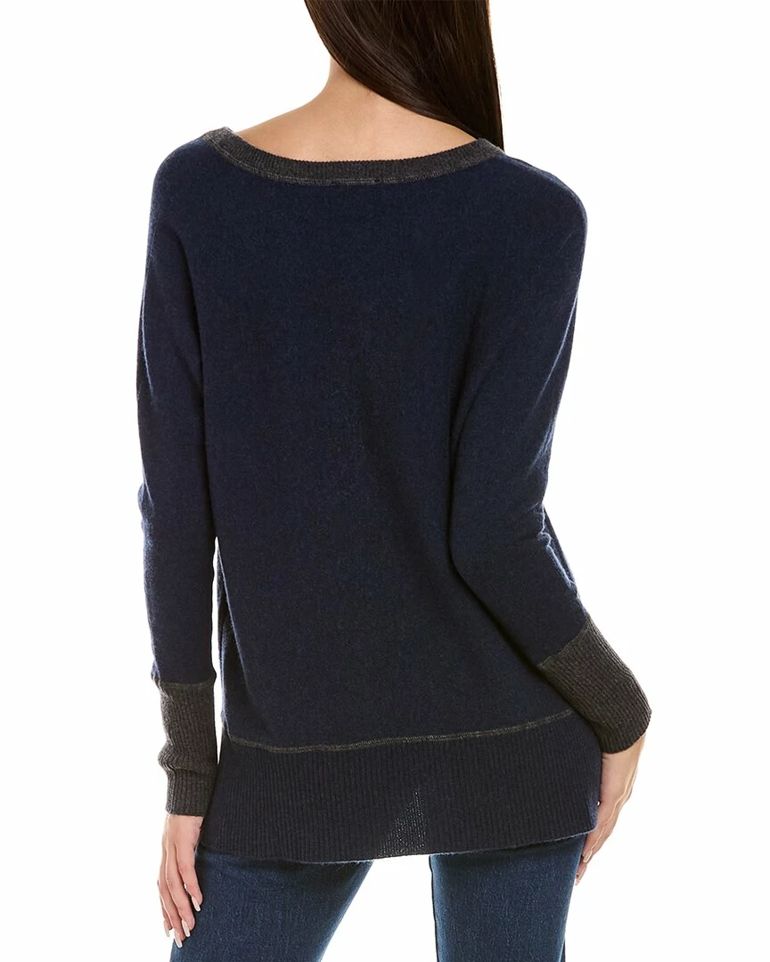 - Surplice V-Neck Cashmere Sweater In Navy/Charcoal With Surplice Front And Ribbed Trim