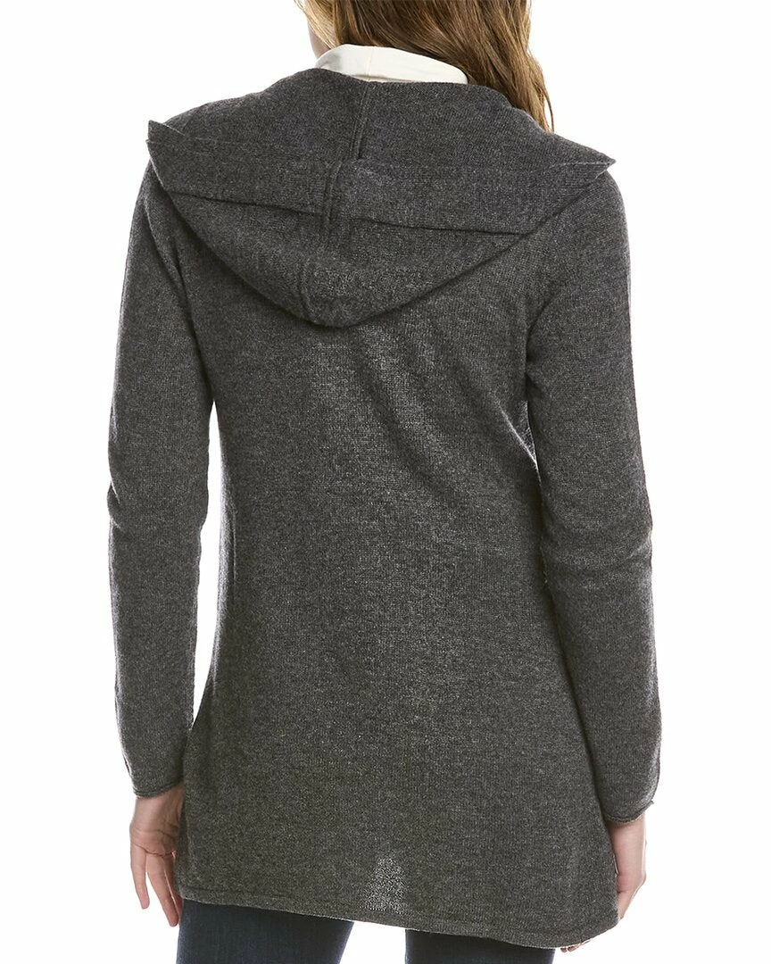 - Hooded Cashmere Cardigan In Charcoal With Double Placket