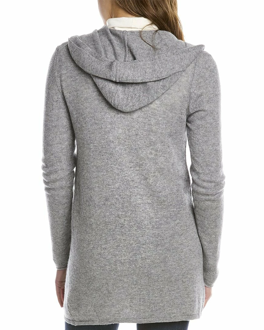 - Open Front Cashmere Cardigan In Sterling With Hooded Back And Layered Front