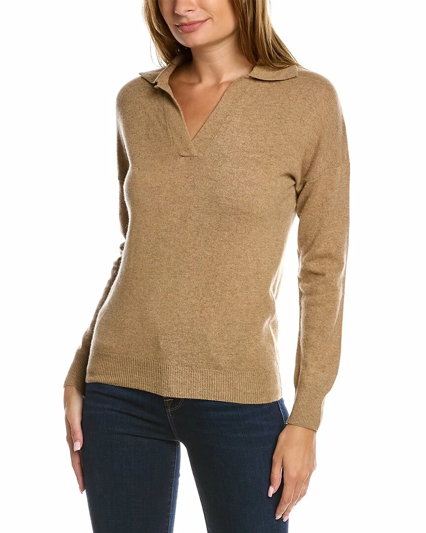 - Polo Neck Cashmere Sweater In Toffee With Split Neckline, Spread Collar, Dropped-Shoulder Sleeves And Ribbed Trim
