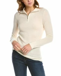 - Quarter-Zip Cashmere Sweater In White With Mock Collar