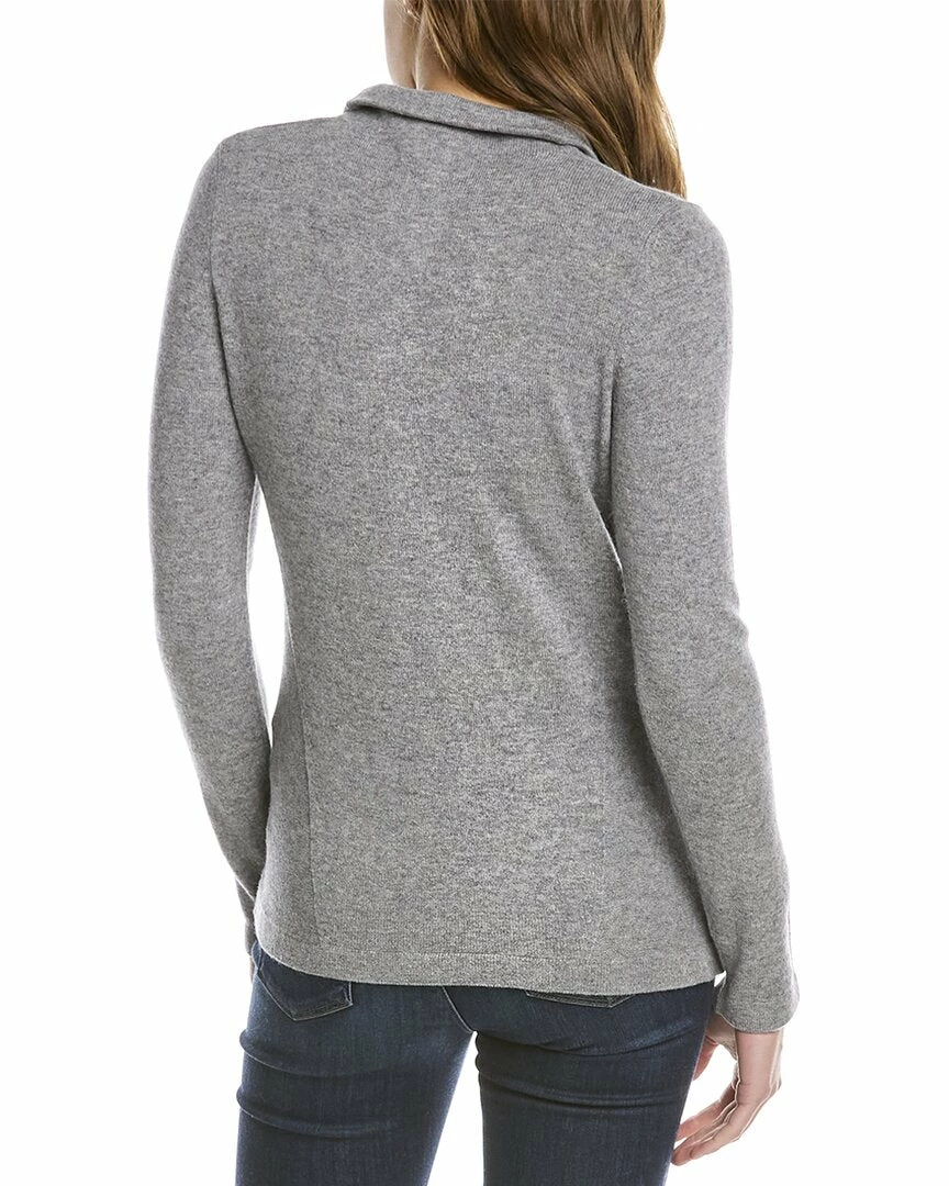 - Quarter-Zip Cashmere Sweater In Grey With Mock Collar