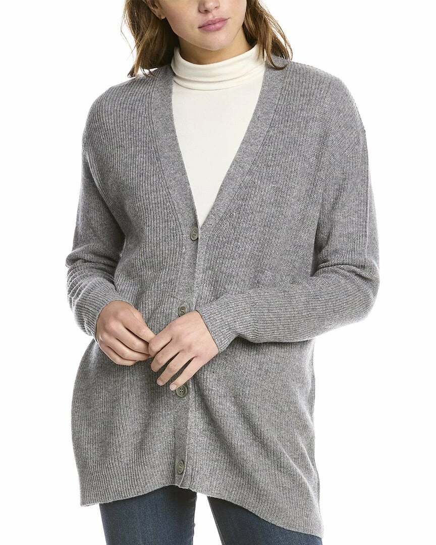 - Ribbed Cashmere Boyfriend Cardigan In Grey With Dropped-Shoulder Sleeves