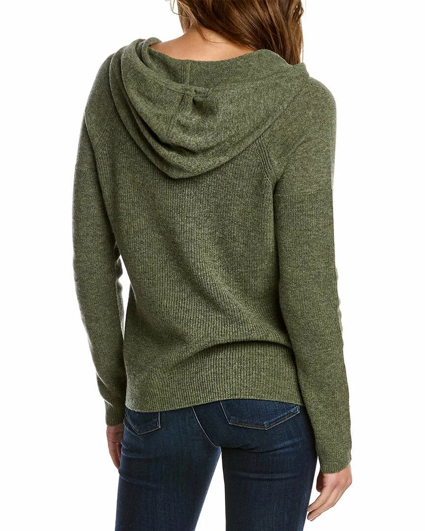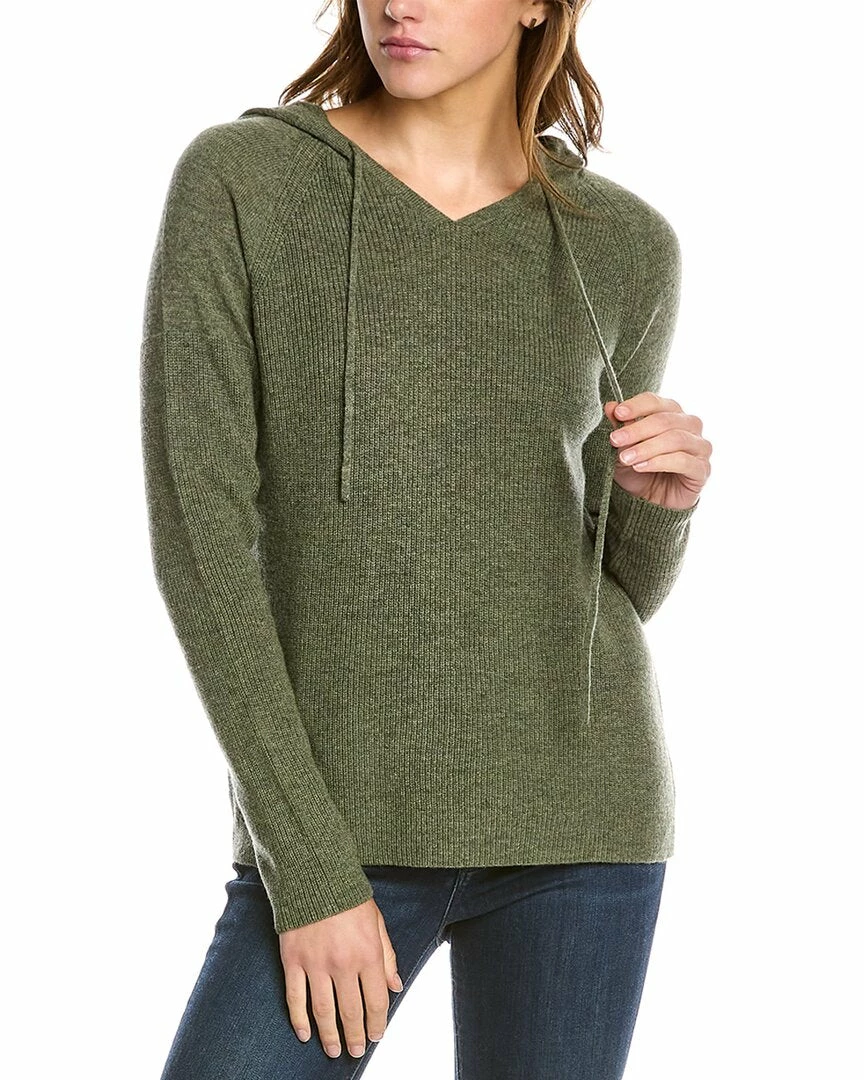 - Ribbed Cashmere Pullover In Green With Drawstring Hood