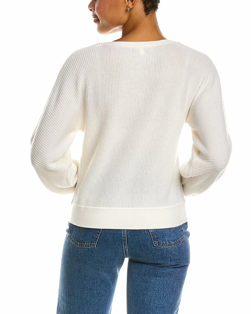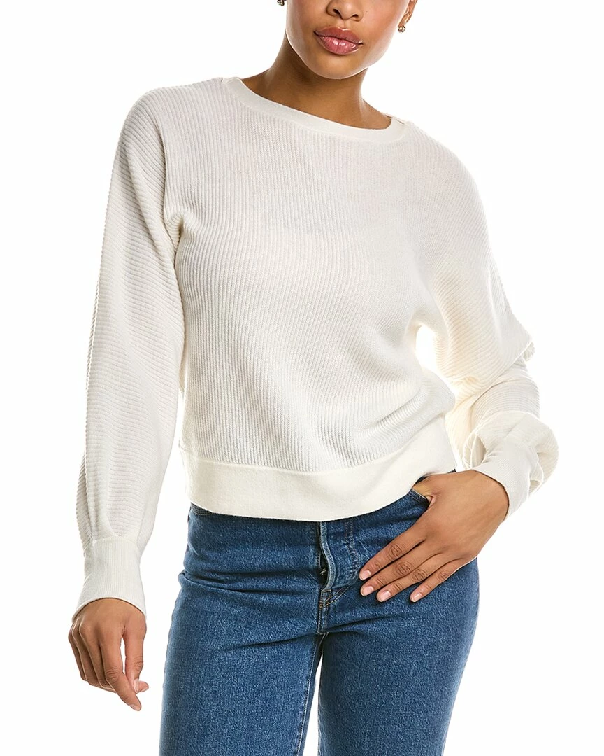 - Ribbed Cashmere Sweater In Pearl With Ballet Neck, Dolman Sleeves, And Pleats At Cuffs