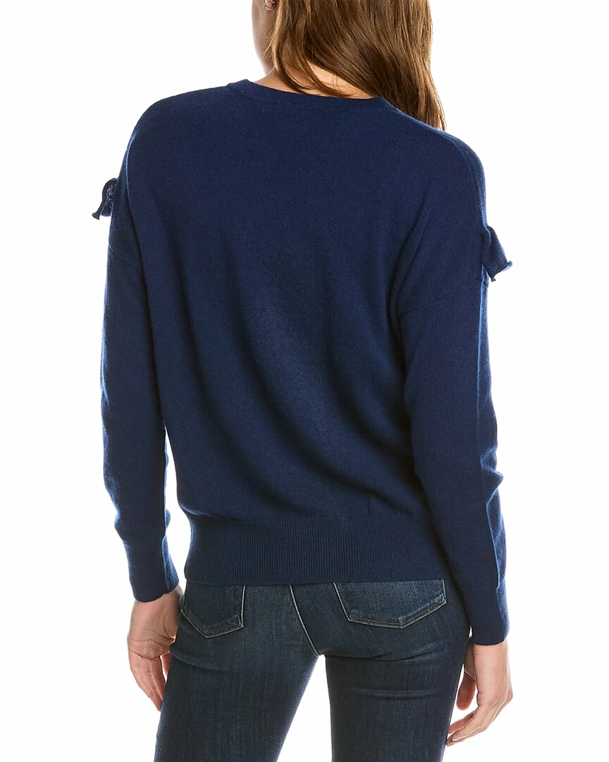 - Ruffle Trim Cashmere Sweater In Navy With Dropped-Shoulder Sleeves