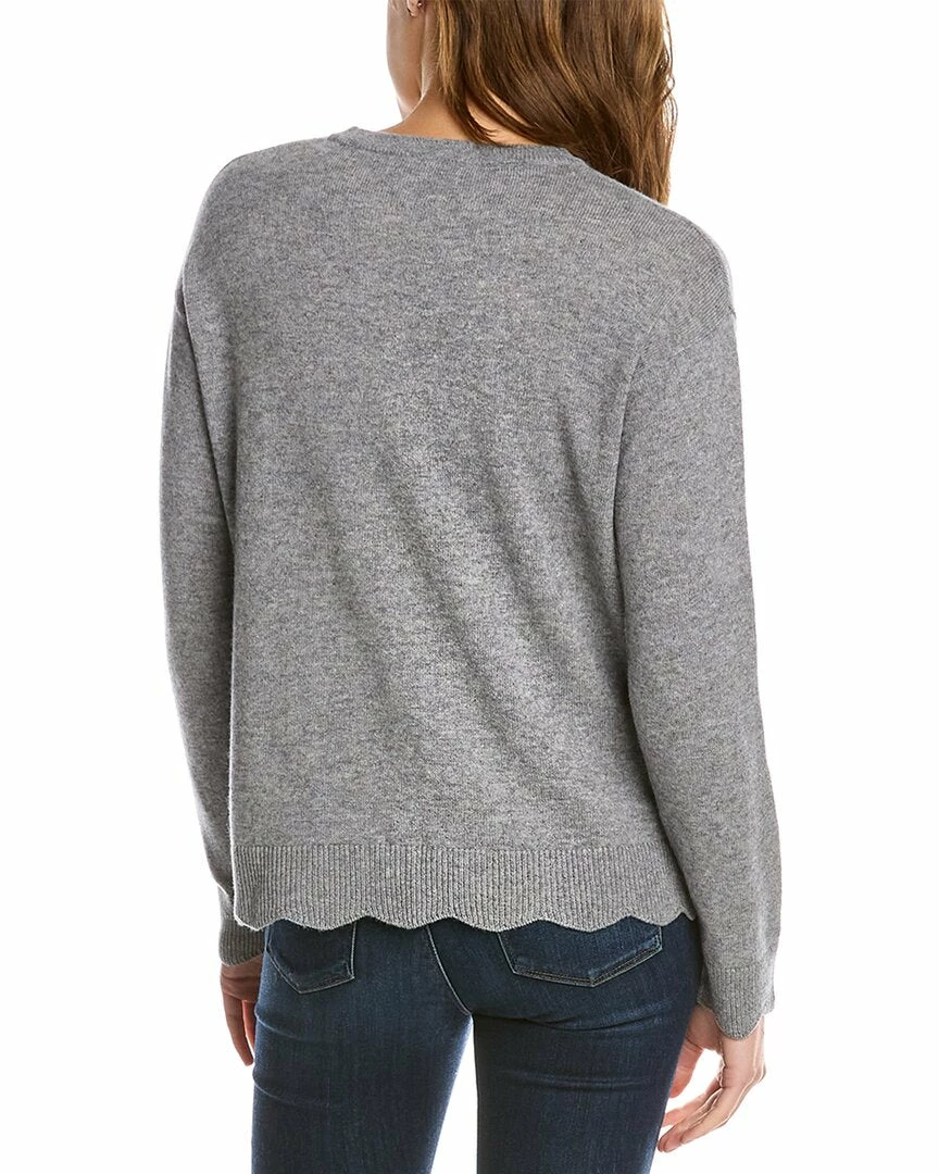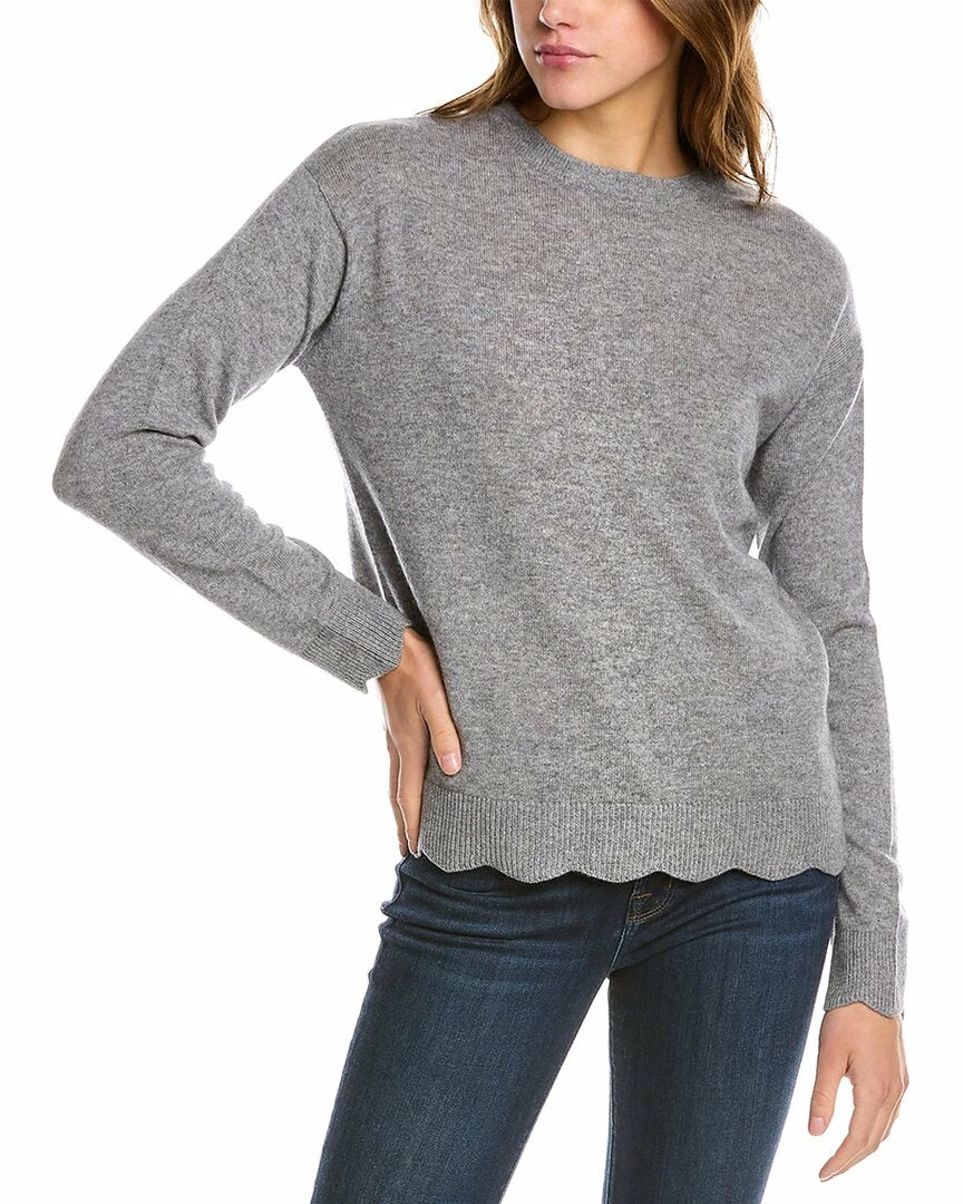 - Scalloped Cashmere Sweater In Grey With Dropped-Shoulder Sleeves