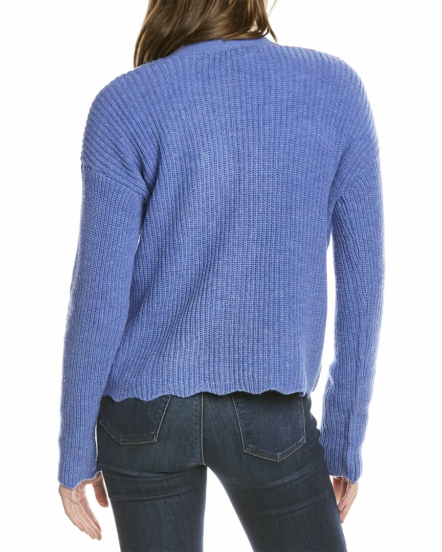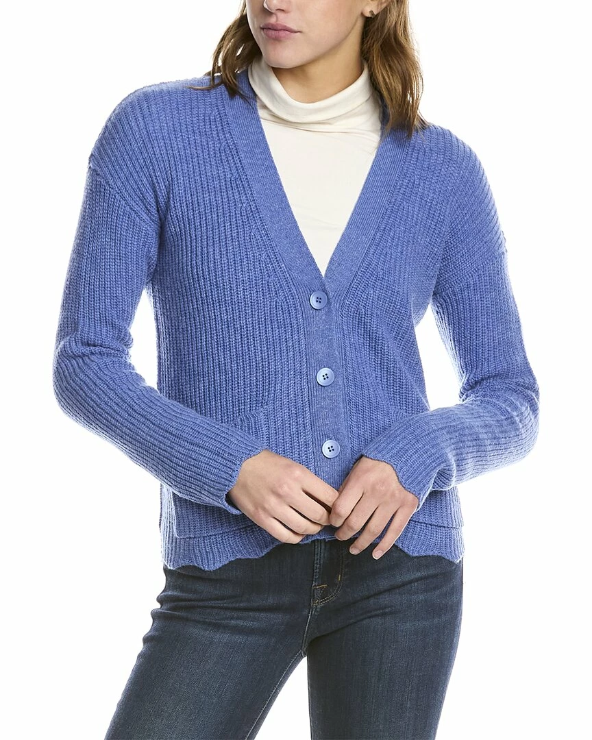 - Scalloped Wool & Cashmere-Blend Cardigan In Blue With V-Neck And Dual Front Pockets