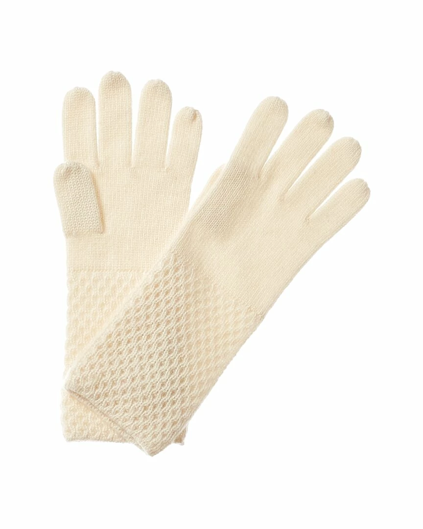 - Texture Cashmere Gloves In Ivory With Textured Knit Cuff