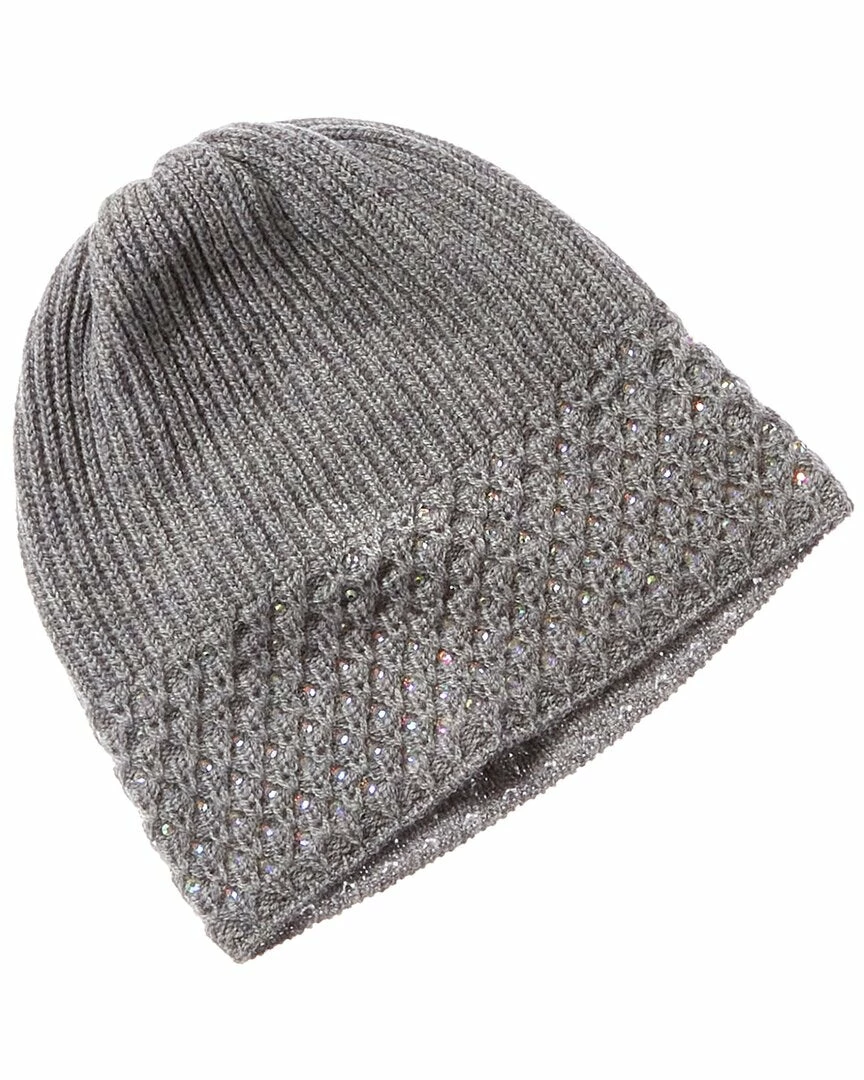 - Texture Stitch Studded Cashmere Hat In Grey With Rhinestone Embellishments