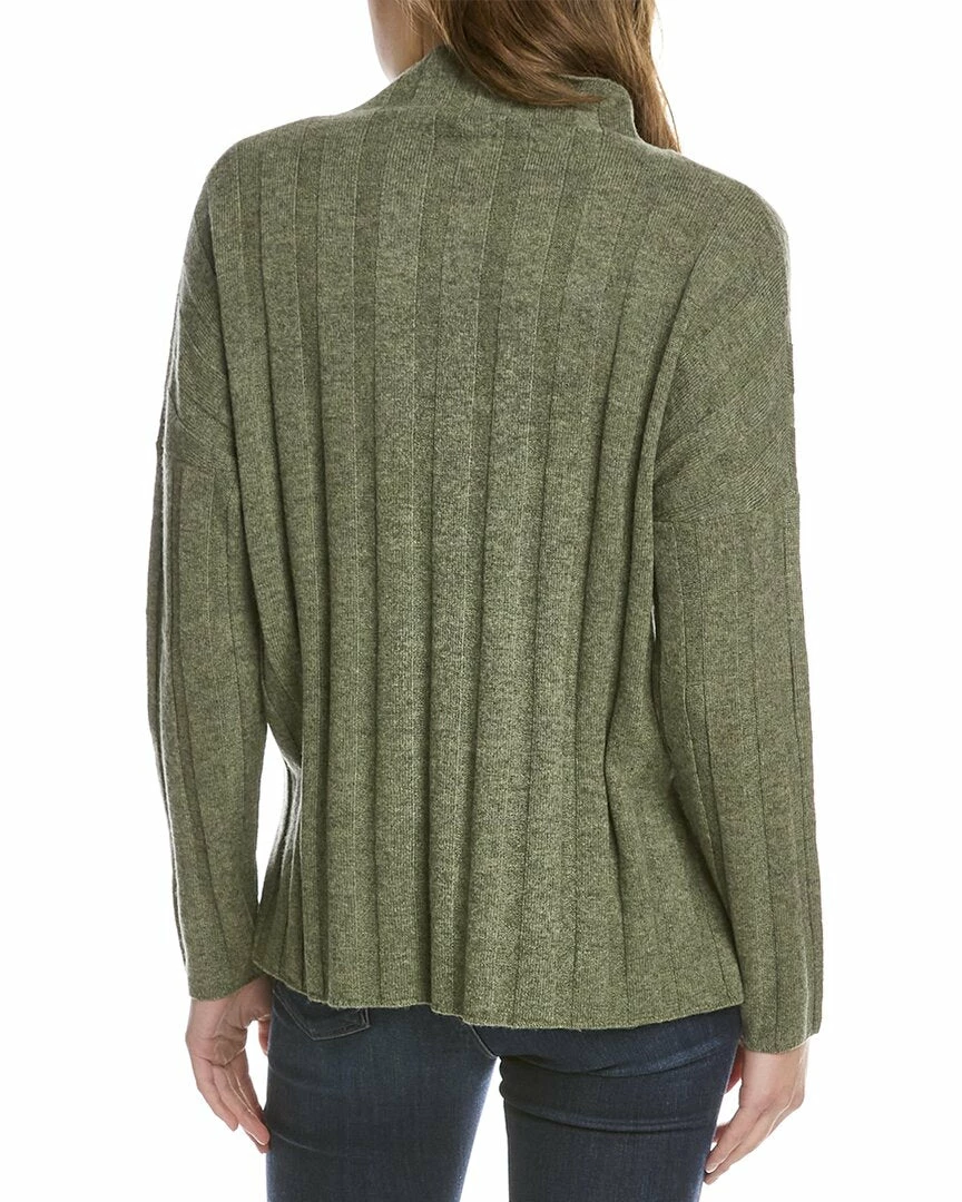 - Wide Rib Funnel Cashmere Pullover In Green With Dropped-Shoulder Sleeves