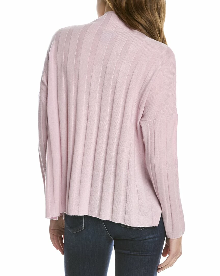 - Wide Rib Funnel Cashmere Pullover In Orchid With Dropped-Shoulder Sleeves
